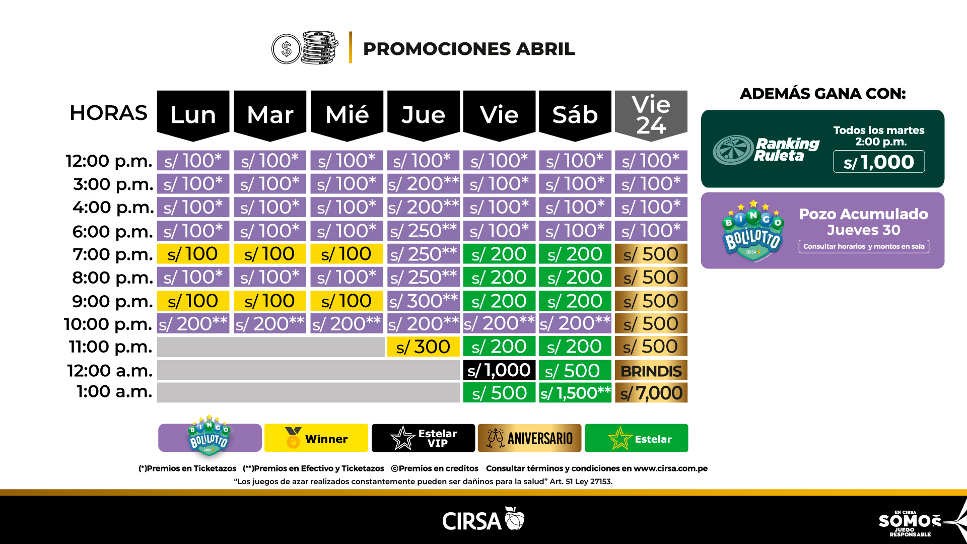 Juega con tu tarjeta CLUB WINNER y obtén grandes beneficios y más puntos para canjear por ticketazos.