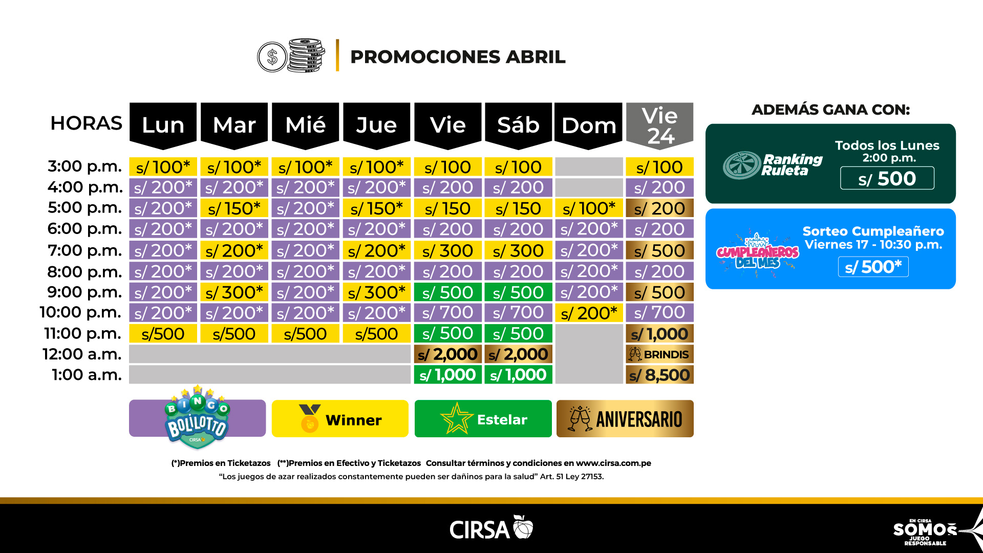 Juega con tu tarjeta CLUB WINNER y obtén grandes beneficios y más puntos para canjear por ticketazos.